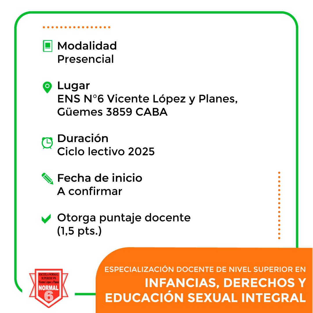 Especialización Docente de Nivel Superior en Infancias, Derechos y Educación Sexual Integral Inscripción aquí